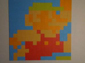 Now that I have a decent stock of colored tiles, I started work on my first 4×4′ 8-bit sprite. I always planned to use the original Mario for my first legit piece. I found a good reference image on DeviantArt